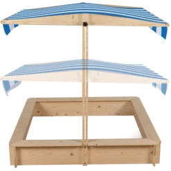 Bovendien is het dak gemaakt van een weerbestendige stof, zodat de Sand box zonder problemen buiten kan blijven staan en kan wachten op een volgend bezoek van u.