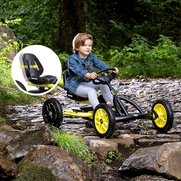 Het stuur en de stoel zijn verstelbaar zodat je nog jaren kunt genieten van je BERG Buddy. Dit zorgt ervoor dat je altijd de ideale zitpositie hebt op je skelter. De zitting is in drie standen verstelbaar zodat je altijd bij de pedalen kunt komen. Bovendien is het stuurwiel van de Buddy traploos in hoogte verstelbaar, waardoor het gemakkelijk is om op elk moment de juiste hoogte in te stellen.