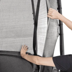 Het hoogwaardige veiligheidsnet en de robuuste beschermrand van de PeakPro beschermen u bij een springfout. En het speciale voetbeschermingssysteem zorgt ervoor dat je voeten bij het springen niet tussen de veren vast komen te zitten.