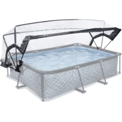 De afdekking is snel bevestigd aan het frame van het zwembad en gemakkelijk te openen en te sluiten met het unieke scharniermechanisme. U zwemt in een mum van tijd in uw eigen binnenzwembad! Je hebt veel ruimte onder de afdekking en dankzij de transparante folie mis je niets van wat er buiten het zwembad gebeurt. De afdekking kan zelfs half open blijven staan, zodat je gemakkelijk in en uit het zwembad kunt stappen. Met de zwembadafdekkingen van EXIT Toys heeft u zwemplezier in weer en wind!