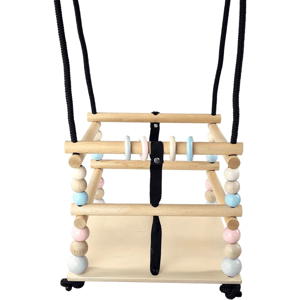 Gebruik onder direct toezicht van een volwassene en controleer regelmatig alle dragende onderdelen van deze kinderschommel (ophanging, bevestigingen, verankering). Haken waarin u de schommel ophangt, moeten zo zijn geconstrueerd dat onbedoeld losraken wordt voorkomen (bijv. door ze minstens 540° te buigen of door gebruik te maken van veerhaken).