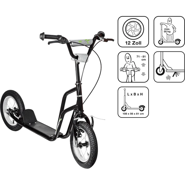 muuwmi Scooter Fun AIR 12 inch, zwart
