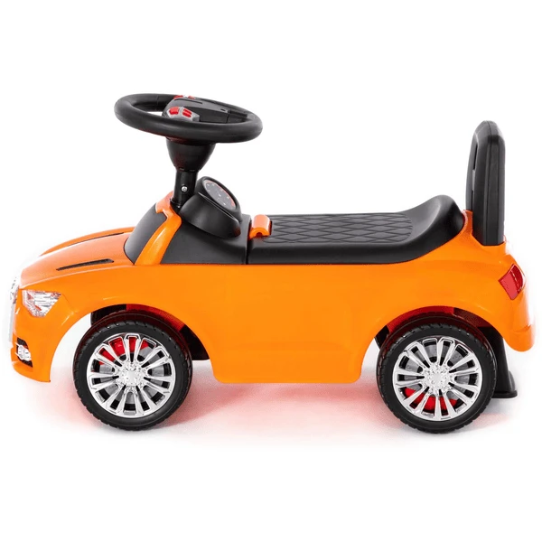 De kleintjes kunnen gemakkelijk hun omgeving verkennen op deze trendy glijbaan. Dankzij de stevige handgreep aan de achterkant is hij gemakkelijk te duwen en ook te vervoeren. Met verchroomde velgen en een praktisch opbergvak onder de zitting. De geluidsmodule op het stuurwiel wordt bediend via verschillende knoppen en genereert de volgende geluiden: sirene (politie, ambulance, brandweer), claxon, motorgeluid, uit-schakelaar.