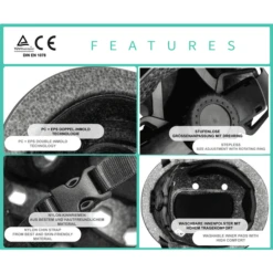 - Dankzij de voorzieningen blijft de helm stevig op het hoofd zitten en altijd in de juiste positie.