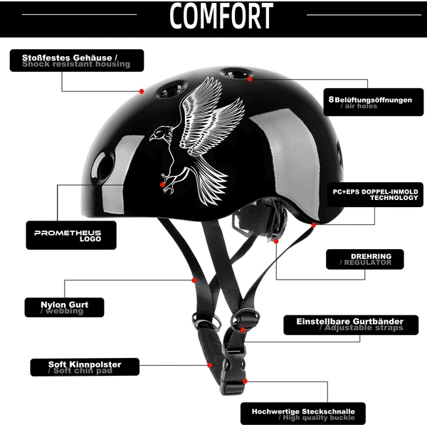 - Dankzij de voorzieningen blijft de helm stevig op het hoofd zitten en altijd in de juiste positie.