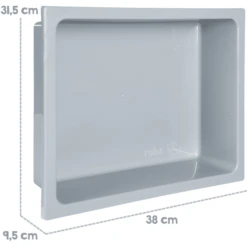 Opbergruimte wordt geboden door een grote plank onder de plastic kuipjes en een plank erboven. Een praktische haak dient als ophanging voor accessoires.