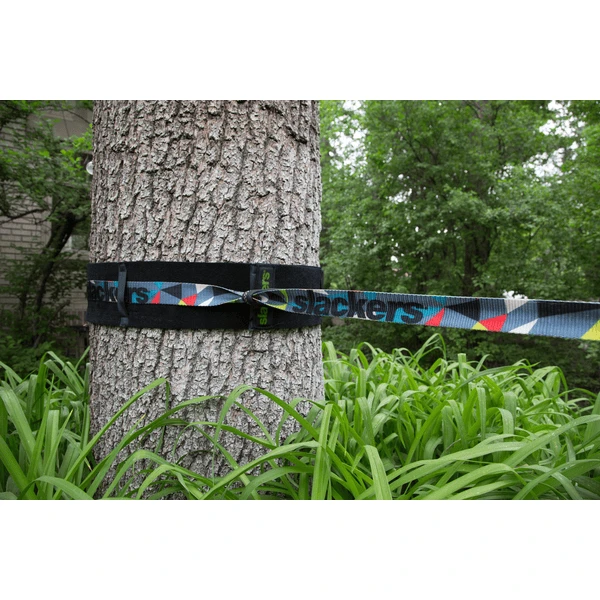 Super doordacht met klittenbandsluiting, waardoor de boombeschermer eerst stevig aan de boom kan worden bevestigd, voordat de lijn wordt opgebouwd. De boombescherming zit zo stevig en glijdt dan niet meer met de structuur van de lijn mee. Bovendien zijn aan de 2,40 meter lange en 15 cm brede boombescherming 7 oogjes van weefselband genaaid, waar de lijn doorheen kan worden geregen. Dit betekent dat de boombeschermer en de lijn altijd stevig op elkaar gecentreerd blijven. De lijn kan niet van de boombeveiliging glijden.
