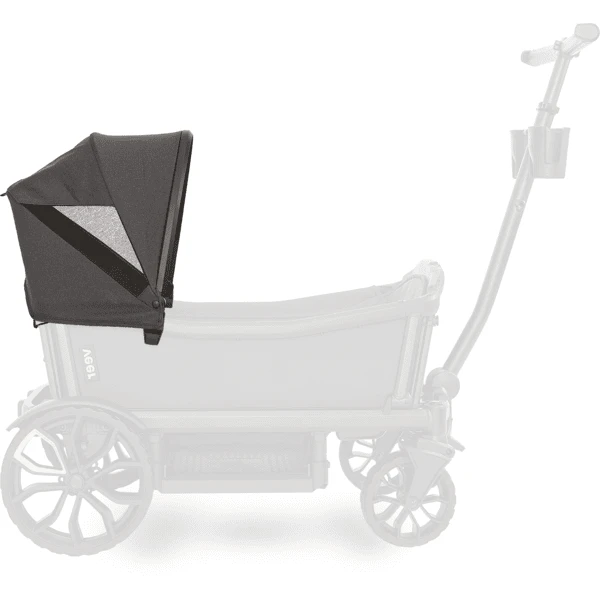Per cruiser kunnen maximaal twee zonnedaken worden gemonteerd – één boven elke stoel. Een kijkvenster zorgt ervoor dat u uw kinderen kunt zien en verborgen magneten zorgen ervoor dat het venster in de bovenste positie blijft staan.